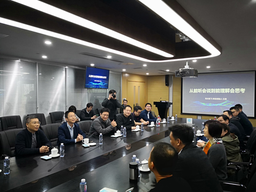 考察团一行首先参访科大讯飞股份有限公司。公司高级副总裁江涛做《从能听会说到能理解会思考》的专题演讲报告,详细介绍人工智能的现在与未来及公司的领先技术,赢得了企业家们的热烈掌声。在公司产品体验区,工作人员向大家展示了公司在智能语音方面领先世界水平的产品,介绍公司在人工智能领域的全方位布局。