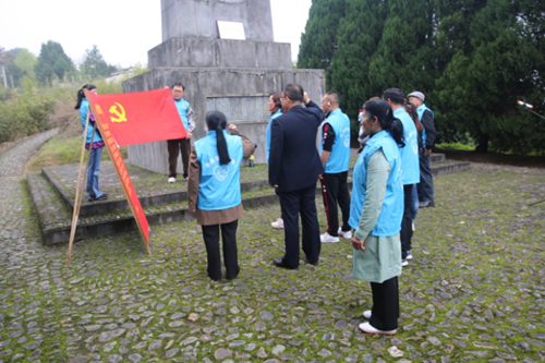 清明节前夕,黟县善巧公益志愿者协会组织党员和入党积极分子,带着自制的小白花来到黟县东岳山烈士纪念碑前,举行“缅怀革命先烈,重温入党誓词”活动。青山埋忠骨,史册载功勋,东岳山烈士纪念碑巍峨耸立,清风吹拂苍松翠柏,诉说着对英雄的怀念与追思。协会秘书长带领党员志愿者,面对着鲜红的党旗,庄严的举起右拳,重温入党誓词:“我志愿加入中国共产党,拥护党的纲领,遵守党的章程,履行党员义务·····”响亮的誓词回荡在苍松翠柏间。