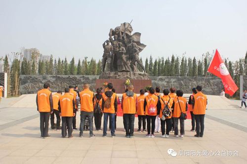 2019年4月7日上午,阜阳阳光爱心公益协会组织了“缅怀先烈,不忘初心,永跟党走"祭奠革命先烈活动。各志愿者代表和协会理事一起到阜阳和平广场革命烈士纪念馆敬祭英烈。
