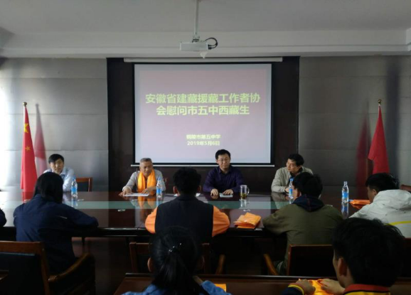 5月6日下午,安徽省建藏援藏工作者协会副会长、铜陵市政协秘书长、协会驻铜陵办事处主任侯化林同志代表协会到铜陵市第五中学西藏班开展“扶贫助学”活动。