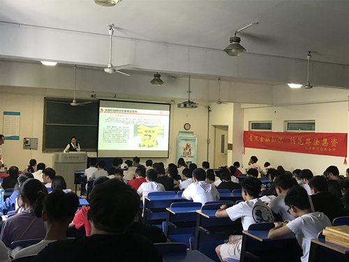 2019年5月22日,安徽省银行业协会、九江银行合肥分行、合肥师范学院联合开展“防范非法集资宣传月”进校园活动。安徽省银行业协会、九江银行合肥分行工作人员走进合肥师范学院,通过摆放宣传台、发放宣传折页、填写调查问卷、开展公益宣传讲座等形式向在校大学生宣传防范非法集资知识,发放宣传单页1000余份。