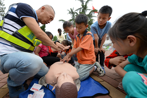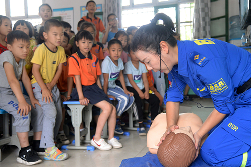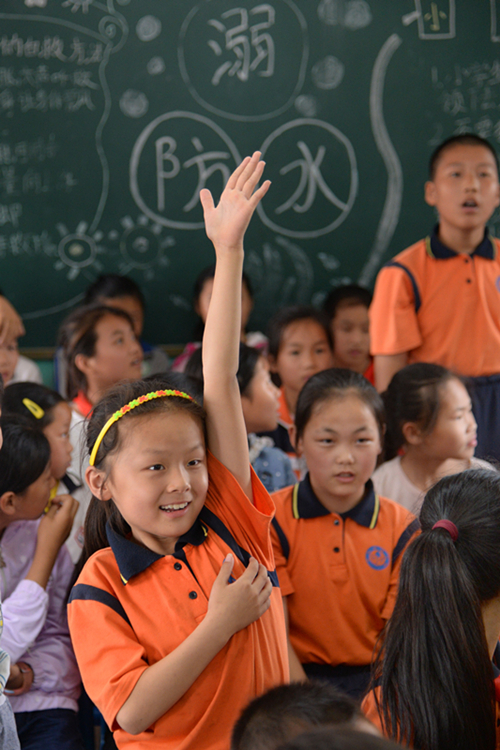 6月17日,一位小朋友积极踊跃地举手抢答预防溺水知识。暑假即将来临,预防溺水刻不容缓。当日,安徽向日葵公益助学服务中心邀请六安蓝天救援队,走进金安区淠东乡甄刘小学,开展以“盛夏童安 为爱护航”为主题的防溺水知识进校园活动,通过播放影像资料、预防溺水常识竞答、意外紧急救护技能培训等方式,让同学们学习预防溺水知识和紧急救护技能,了解溺水对家庭、社会的影响,增强孩子们的安全防范意识和自我保护意识。(田凯平 摄影报道)