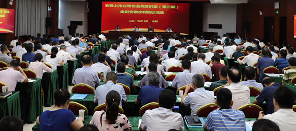 7月18日,我会在安徽水利举办安徽上市公司协会“高管讲堂”第三讲,公司董监高及子公司负责人、控股股东安徽建工集团的高管等200余人参加培训。安徽建工集团总经理刘家静、安徽水利董事长王厚良、我会副会长兼秘书长袁宏生等出席活动。