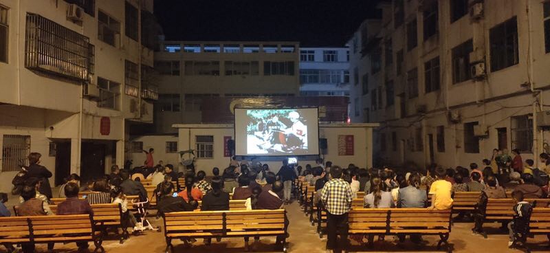 次日上午轰鸣的9.18警报拉响之后,怀着沉重的心情,现场对镇文化站工作人员进行了放映技术培训,今晚继续放映《百团大战》,以此纪念 “九.一八”,警钟长鸣,不忘国耻。
