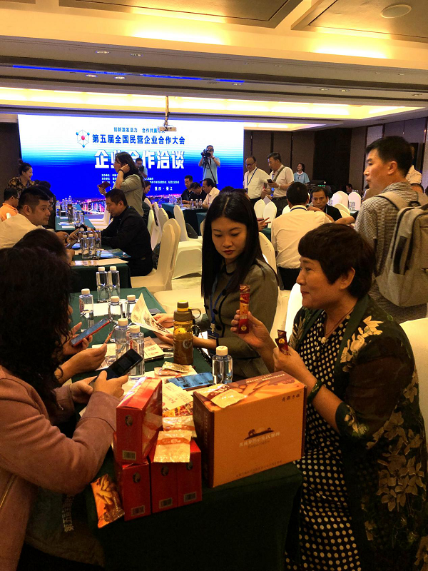 (我省民营企业在合作大会洽谈环节做产品推介)