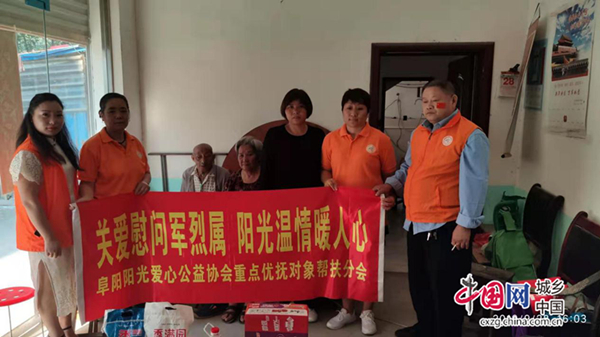 二路:阜阳市经济技术开发区申寨社区。阜阳阳光爱心公益协会重点优抚对象帮扶分会志愿者们在社区干部带领下,对社区困难退伍军人进行走访慰问,为困难退伍军人、老党员,为他们送去节日的祝福,把党和政府的关怀和温暖带到他们的心中。参与志愿者:王广玉、于朝明 、亓兰兰 、金影 、蒋晓玲等。