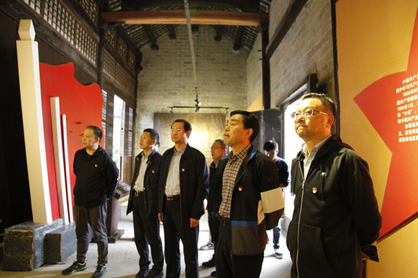 金寨县被喻为“革命的摇篮,将军的故乡”。全体党员来到金寨汤家汇镇,先后参观了豫东南道区苏维埃政府旧址、赤色邮政局旧址、县政治保卫局旧址、少共豫东南道委旧址等爱国主义教育基地,共同缅怀红军先辈在风雨岁月中的艰辛历程和前赴后继的感人事迹,感悟他们坚定的理想信念与不屈不挠的革命精神。