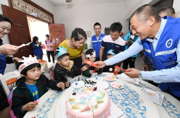 阜阳市心连心志愿者协会与爱心人士为龙凤四胞胎共同庆祝6周岁生日。