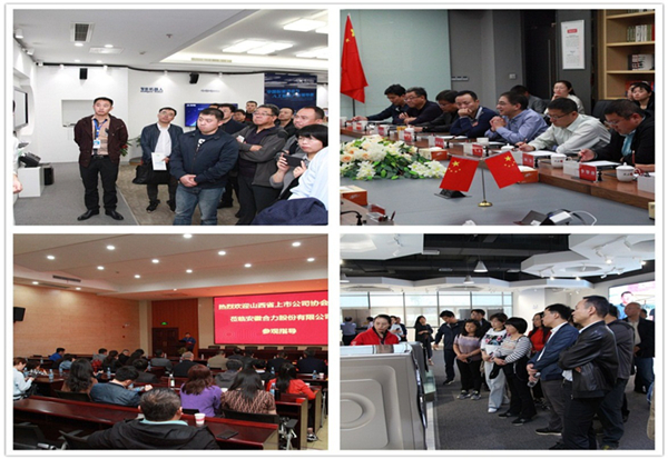 安徽上市公司协会组织邀请山西交流团先后赴科大讯飞、皖新传媒、安徽合力、惠而浦等4家会员单位进行现场考察座谈。通过现场参观公司展厅、车间流水线和组织座谈等方式,向交流团展示了安徽上市公司的企业文化、发展历程、经营理念、管理模式、产品创新、市场定位及战略目标等,使交流团对安徽经济发展以及安徽上市公司有了较全面的了解。