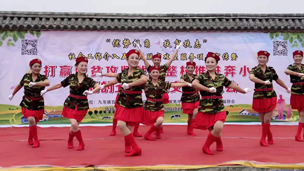 “快快快,演出马上就开始了,再晚就赶不上了……”。10月25日,在九龙镇五坑村,一场精彩的文艺演出吸引了全村村民前来观看,现场一片欢声笑语。为了丰富农村文化生活,树立群众脱贫致富信心,充分发挥文化扶贫的作用,由阜阳益民社工,五坑村委会,阜阳阳光爱心公益协会共同举办的“优势视角·扶贫扶志”社会工作介入五坑村脱贫攻坚服务项目,宣传暨打赢脱贫攻坚战·整村推进奔小康《美丽的五坑村民文艺联欢会》活动在九龙镇五坑村举行!阳光协会艺术团的演员们为村民送来了丰盛的文艺大餐。