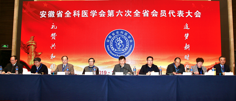 2019年11月30日,安徽省全科医学会第六次全省会员代表大会在合肥香格里拉大酒店隆重召开,安徽省科学技术协会副主席方勇华到会祝贺并致辞,安徽省期刊协会副主席孟黎东代表兄弟协会宣读贺信,安徽省科学技术协会科普部部长钟玉坤及学会正、副理事长及秘书长在主席台就坐,大会由安徽省全科医学会五届理事会理事长钱旭久主持,来自全省医疗卫生系统257名会员代表参加会议。