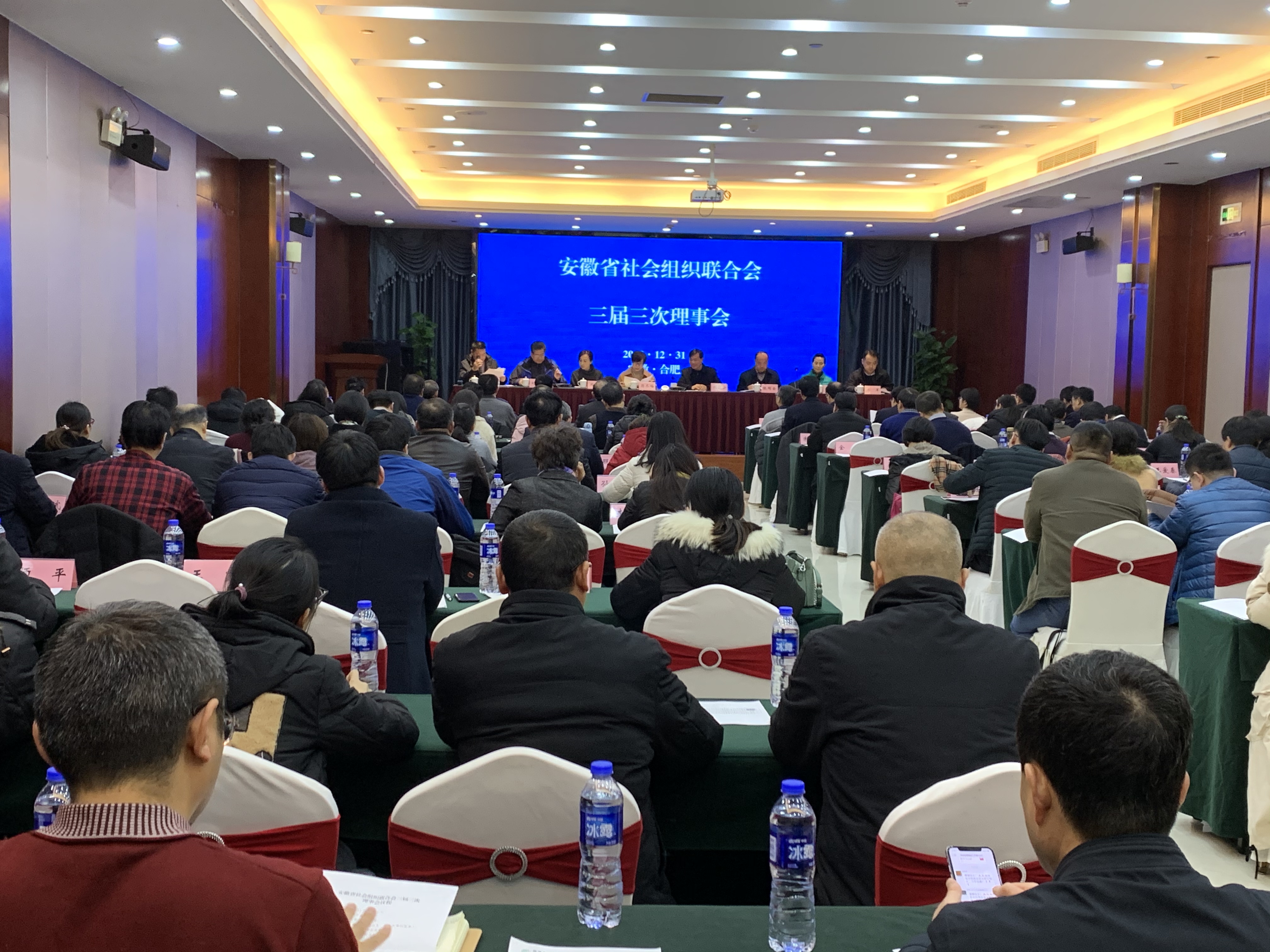 2019年12月31日,安徽省社会组织联合会在合肥召开三届三次理事会。有关副会长、副会长单位负责人、执行监事长、各副监事长、秘书长、各副秘书长、理事单位负责人及联合会秘书处工作人员100余人参加了会议。省社会组织联合会会长刘爱国、法人王军、省社管局局长、省社会组织综合党委副书记阚家安,省社管局副局长张同金、省社管局副局长蒋冬梅等出席会议。会议由安徽省人居环境监测中心主任、省联合会监事长吴志强主持。
