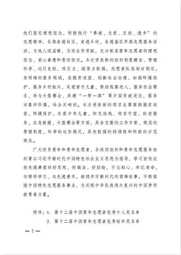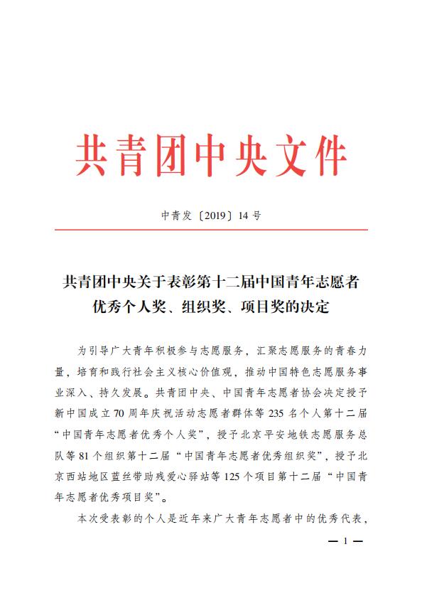 ÖйúÇàÄêÖ¾Ô¸ÕßÓÅÐã¸öÈ˽±¡¢×éÖ¯½±¡¢ÏîÄ¿½±£¬ÊÇÓɹ²ÇàÍÅÖÐÑë¡¢ÖйúÇàÄêÖ¾Ô¸ÕßлáÊÚÓèµÄÎÒ¹úÇàÄêÖ¾Ô¸·þÎñÁìÓòµÄ×î¸ßÈÙÓþ¡£±¾½ì¹²ÓÐ235Ãû¸öÈË»ñ¡°ÖйúÇàÄêÖ¾Ô¸ÕßÓÅÐã¸öÈ˽±¡±£¬81¸ö×éÖ¯»ñ¡°ÖйúÇàÄêÖ¾Ô¸ÕßÓÅÐã×éÖ¯½±¡±£¬125¸öÏîÄ¿»ñ¡°ÖйúÇàÄêÖ¾Ô¸ÕßÓÅÐãÏîÄ¿½±¡±¡£¸Ã½±ÏîÖ¼ÔÚÒýµ¼¹ã´óÇàÄê»ý¼«²ÎÓëÖ¾Ô¸·þÎñ£¬»ã¾ÛÖ¾Ô¸·þÎñµÄÇà´ºÁ¦Á¿£¬ÅàÓýºÍ¼ùÐÐÉç»áÖ÷ÒåºËÐļÛÖµ¹Û£¬Íƶ¯ÖйúÌØÉ«Ö¾Ô¸·þÎñÊÂÒµÉîÈë¡¢³Ö¾Ã·¢Õ¹¡£