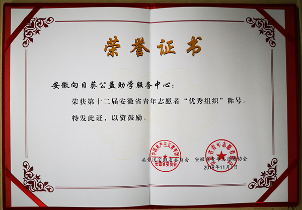 ¡ð 2019Äê11Ô£¬ÏòÈÕ¿û±»ÆÀΪµÚÊ®¶þ½ì°²»ÕÊ¡ÇàÄêÖ¾Ô¸Õß¡°ÓÅÐã×éÖ¯¡±¡£