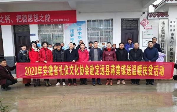 元月七日上午,安徽省礼仪文化协会在秘书长徐鸿建,监事会主席李鑫及副会长,常务理事一行20人顶风冒雨,迎着瑟瑟的寒风,驱车来到定远县将集镇,即蒋集社区,大庙村,井岗村,秦集村慰问困难群众,送去70床棉被,使他们在寒冬中真切感受来自社会的温暖,和省礼仪文化协会的深切关怀。