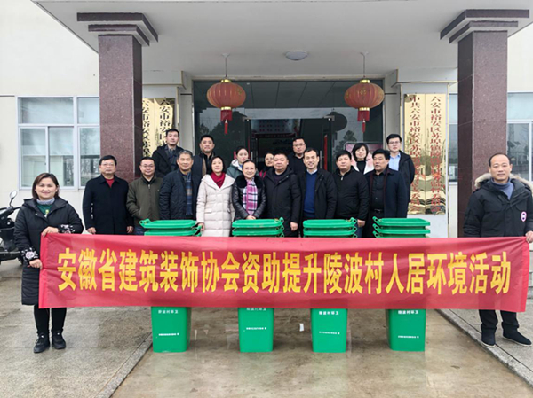 2019年12月24日上午,安徽省建筑装饰协会秘书长张红燕带领参与捐赠的会员企业代表来到安徽省住建厅定点帮扶村六安市裕安区苏埠镇陵波村,开展资助提升陵波村人居环境活动。