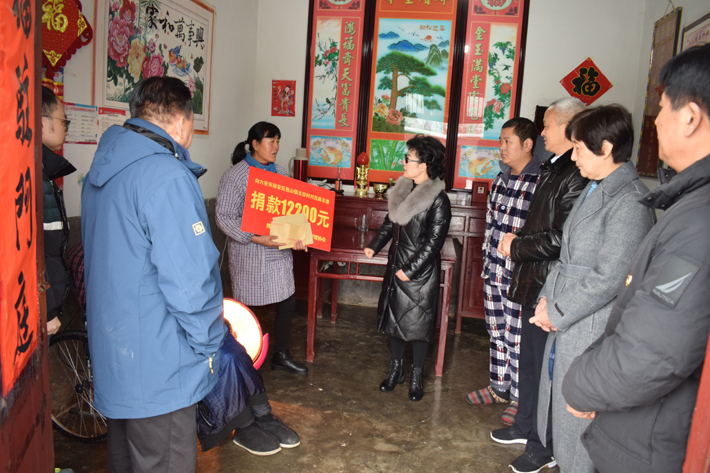 安徽物协一行首先来到该村特困户陈志堂的家,将饱含全省物业管理行业的爱心与捐款送给他们。陈志堂因高血压后遗症导致半身不遂,24岁的儿子本是家中唯一的“顶梁柱”,可去年却罹患骨癌,高昂的医药费导致这个贫困的家庭雪上加霜。前不久,接到该村“村两委”发出的《爱心捐款倡议书》后,安徽物协及时通过微信群向协会理事单位及以上会员负责人(出任人)发出捐款倡议,累计募集捐款12200元。在陈志堂家,安徽物协一行鼓励他们勇敢应对病魔、坚强面对生活。
