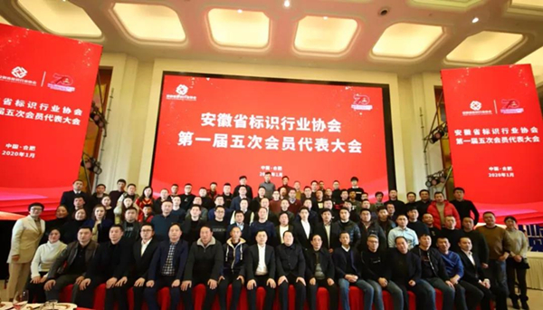 2020年1月11日,安徽省标识行业协会第一届五次会员大会暨2020年“广旭蓝 揽天下”安徽标识人年会在合肥白金汉爵大酒店举行,安徽省民政厅社会组织管理局局长、安徽省社会组织管理局综合党委副书记阚家安,安徽省机关事务管理局原党组成员纪委书记、安徽省餐饮研究会会长郭景斌,安徽省市场监督管理局原调研员、安徽省个体民营企业协会原副会长兼秘书长王登山,安徽省标识行业协会党建指导员张辉处长,全体理事单位及会员单位、部分应邀嘉宾三百多人参加此次会议。