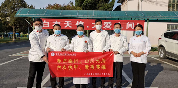 为了犒劳医疗队员们的“胃”,“安徽省五一劳动奖章”获得者、徽菜大师尹亲林和他的劳模工作室成员们(王力、谢昕、马建树、张同明、王培霞)主动请缨,为医疗队员们准备“劳模爱心餐”。