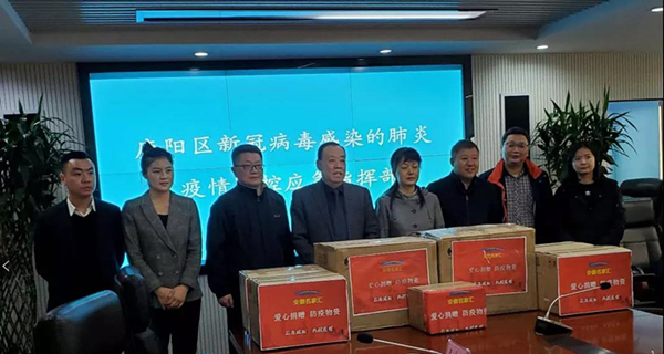 协会顾问宋家伟、协会党委书记戴建华、协会副会长单位安徽中飞新能源投资有限公司张远征、安徽名家汇智慧教育科技有限公司副总经理孟志光、杜艳梅等,向庐阳区政府捐赠测温枪、口罩、消毒液等抗疫物资约15万元。