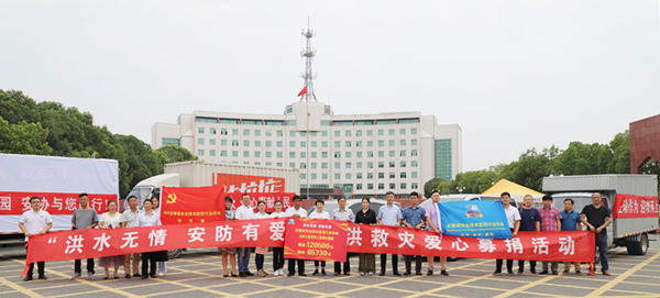 近日,我省受连续强降雨侵袭,多地发生洪涝灾害。安徽省安防协会充分展现社会组织责任与担当,向会员企业发出倡议,捐款捐物,驰援灾区,迅速开展抗洪抢险救灾动员工作。7月30日上午,协会理事长王慧莉带领会员企业赴庐江县开展“洪水无情 安防有爱”抗洪救灾爱心募捐活动,向灾区捐赠共计价值近20万元的善款和物资。