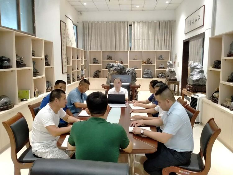 2020年8月22日下午, 安徽省灵璧石协会召开专题会议, 学习传达安徽省社会组织管理局关于全省社会组织认真落实习近平总书记重要指示精神, 坚决制止餐饮浪费行为的倡议书。