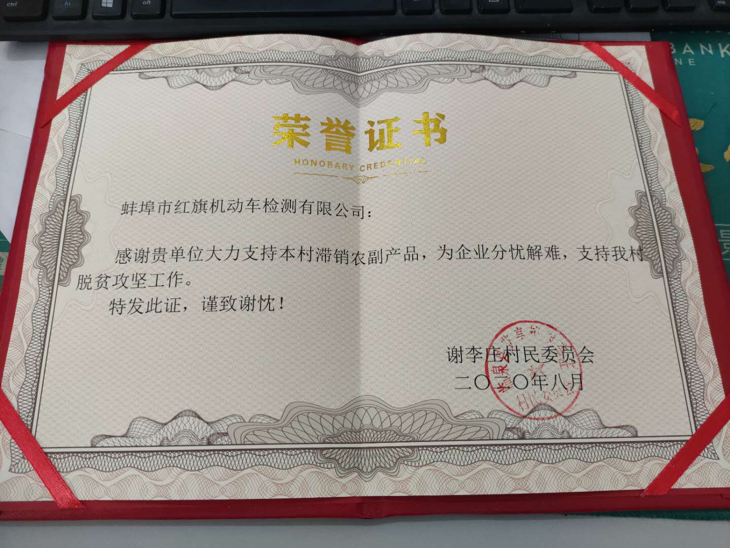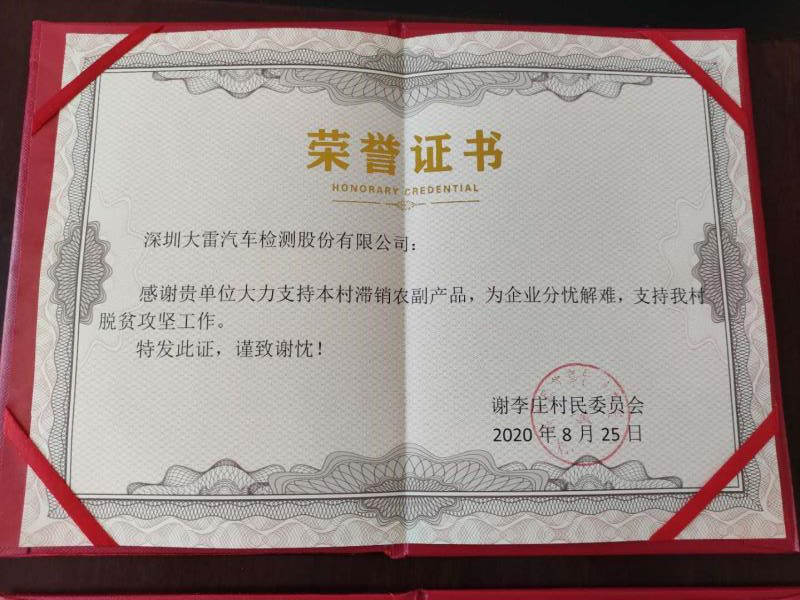 近日,安徽省机动车辆检测协会副会长单位深圳大雷汽车检测有限公司、宿州中远机动车安全技术检测有限公司和监事长单位蚌埠红旗机动车检测有限公司先后收到协会定点扶贫村—阜阳市临泉县艾亭镇谢李庄村委会寄来的荣誉证书,感谢他们大力支持销售该村滞销的农副土特产品菊花,为企业分忧,为脫贫攻坚助力。