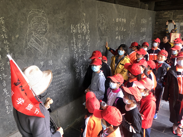 º¢×ÓÃÇÔÚ³ØÖÝÊÐÆëɽÔÀ·ÉµñÏñÏÂÁôÓ°