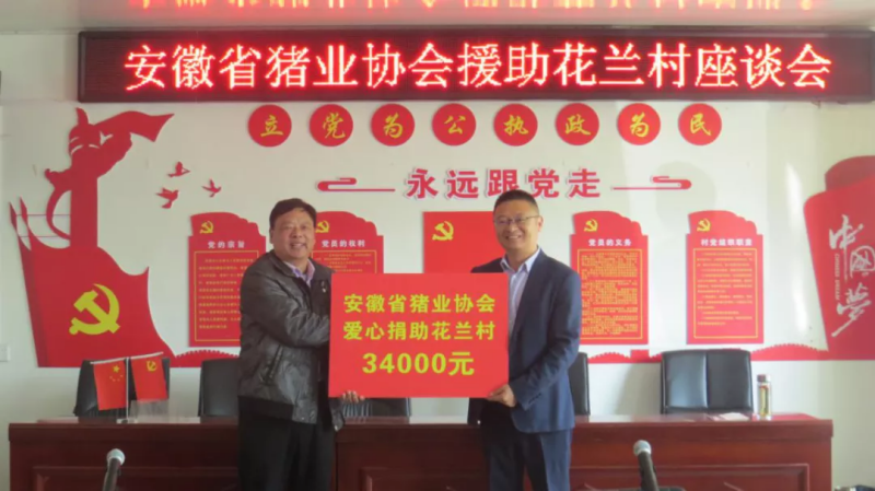 座谈会上还举行了捐赠仪式,省猪业协会会长杨勇代表协会向花兰村捐赠34000元。杨勇会长表示,脱贫是一项长期工作,能够为困难群众早日脱贫致富做一点贡献是省猪业协会回报社会义不容辞的责任。省猪业协会在做好结对帮扶的同时,将继续与花兰村进行深度对接,在产业帮扶等方面下功夫,扩大帮扶面,深化帮扶措施,把帮扶工作长期开展下去,真正实现精准脱贫。协会其他成员也一致表示将尽其所能,链接资源,积极助力贫困村脱贫。
