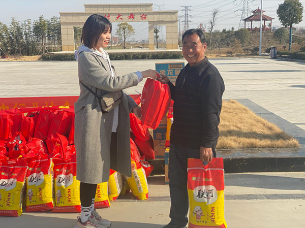 活动中,爱心企业芜湖欧宝机电有限公司出资购买了一万余元的大米、食用油、银耳、大枣、粉丝、燕麦等生活食用品,在村部广场将爱心物资发放至张国和、贾明清等五保户群众手中。“支持协会做好帮扶工作,是我们企业应尽的社会责任,感谢协会能有这样的机会让我们参与进来,我们企业还可以给村里的劳动力提供就业岗位。”欧宝机电科创主管韩庆银说。