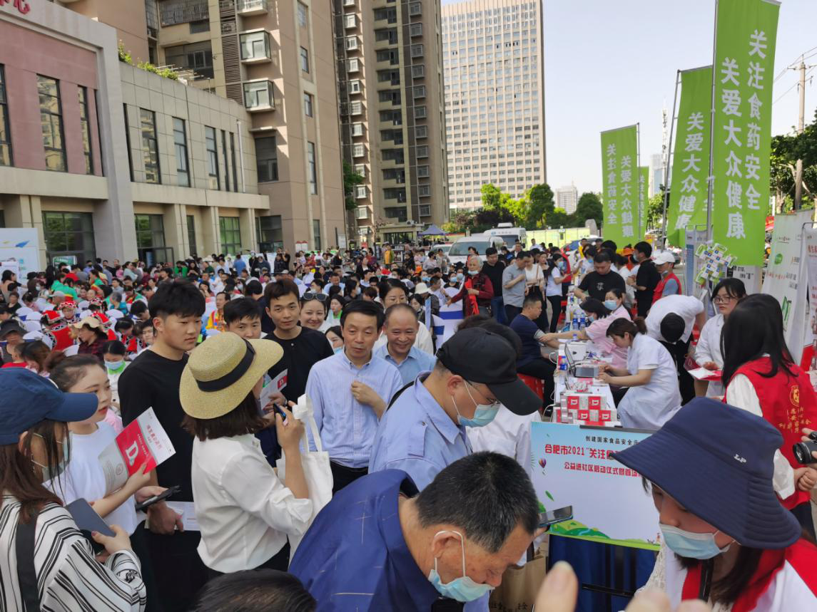 5月8日下午,合肥市2021年“关注食药安全·关爱大众健康”公益进社区活动在蜀山区五里墩街道新时代文明实践中心拉开序幕。合肥市市场监管局党组书记、局长陈明出席启动仪式并致辞,合肥广播电视台台长、合肥文广集团董事长朱煜,安徽省药品零售行业协会会长周双才出席启动仪式,部分县区市场监管工作人员、食品及药品企业代表、群众等400 余人参加活动。
