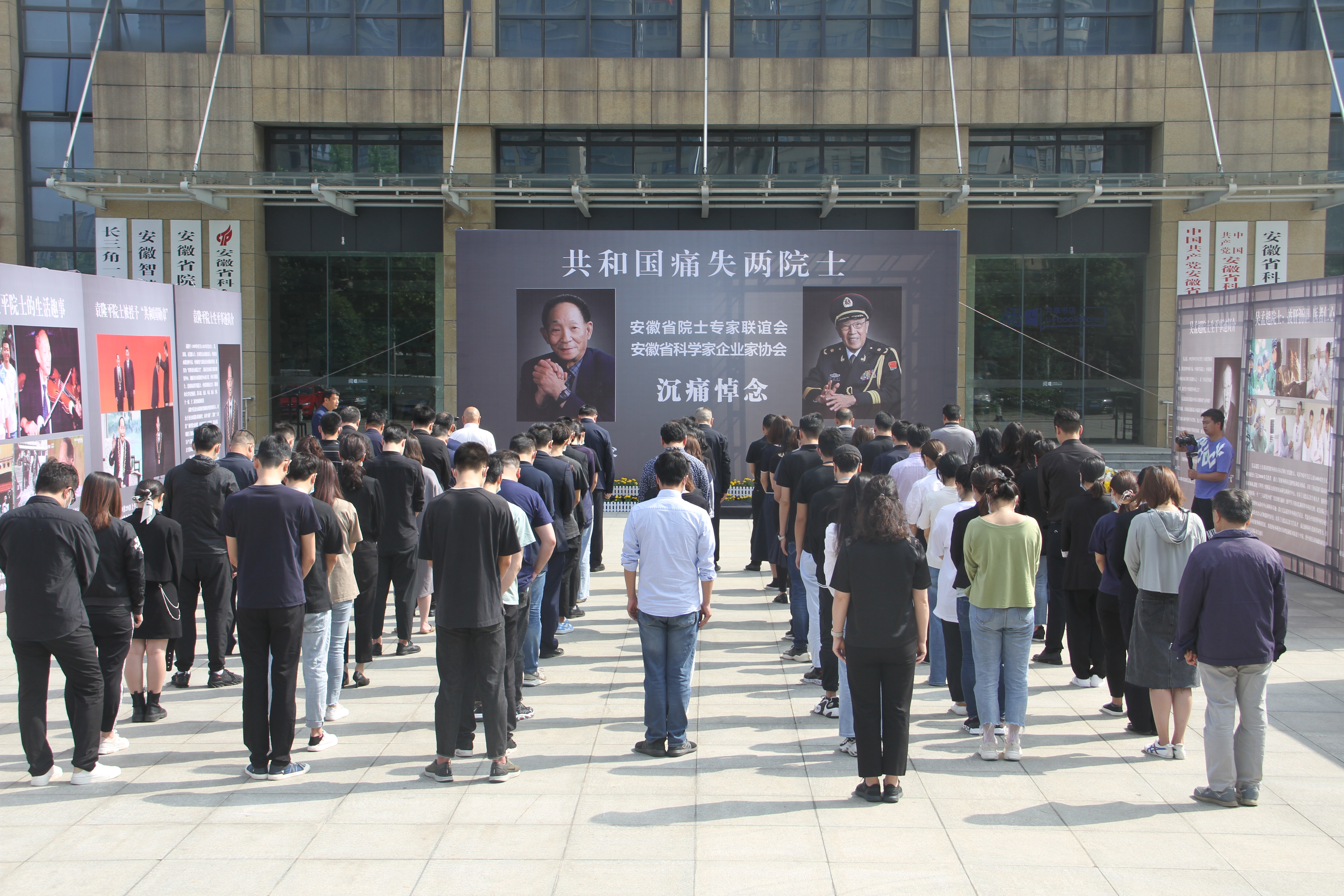 活动中,全体人员面向两位院士遗像默哀、鞠躬,献花吊唁,现场参观学习了两位院士的风采事迹。