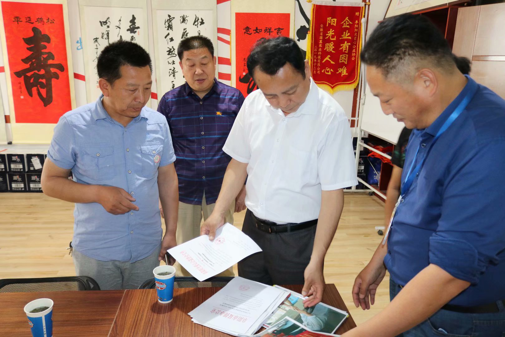 2021年5月25日,中共阜阳市社会组织综党委书记、局长郏振林对阜阳阳光爱心公益协会党建工作进行实地检查指导。
