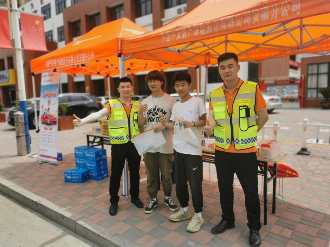 设立“爱心服务站”,服务考生及家长。在考场周边的保险机构所属网点设立“爱心服务站”,备好桌椅、饮用水、口罩、文具、充电器等设施,为考生及家长提供舒适安静的休息区域,全力为高考保驾护航。如:平安财险宿州中支设立的“爱心服务站”共提供口罩、文具袋、食品等各类物品500余件。