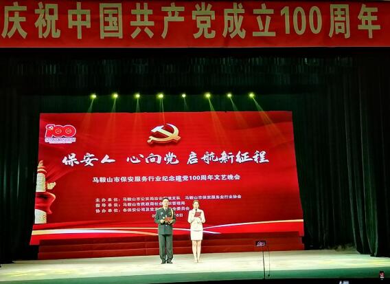 6月16日,市保安服务业行业协会在市人民会堂举办了纪念建党100周年文艺晚会。 演出现场,来自我市保安行业的200多名保安以歌唱、舞蹈、朗诵等丰富多彩的表演形式展现保安人员爱岗敬业、忠于职守的精神风貌,弘扬积极向上的正能量。