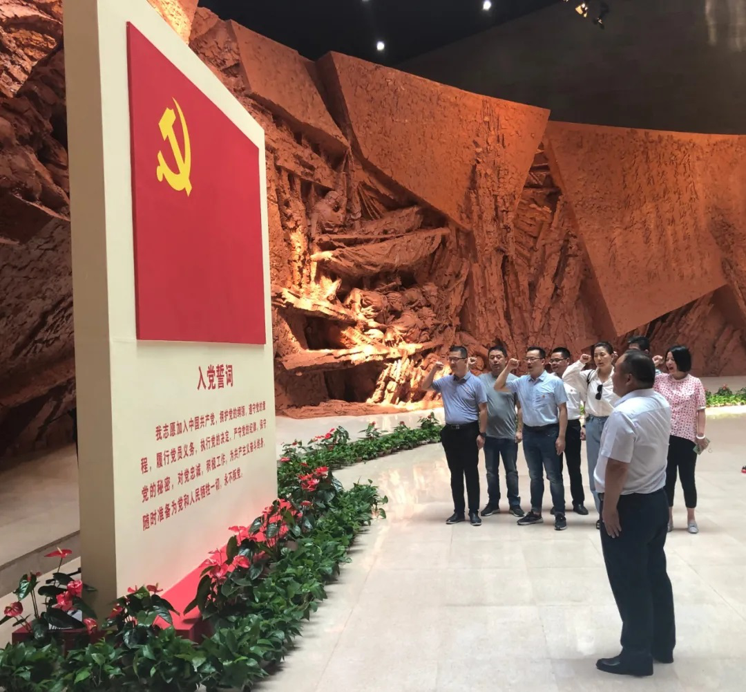 活动共分两个阶段进行。第一阶段,协会党支部全体党员满怀崇敬之情集体参观了渡江战役纪念馆。纪念馆中,一幅幅黑白照片、一件件珍贵文物,生动再现了72年前人民解放军横渡长江的战斗历程,使得全体党员集体穿越到那段炮火纷飞勇往直前的战斗场景。同志们沿着习近平总书记去年来纪念馆的考察路线,一边走一边看,认真听取讲解,不时驻足询问有关情况,对总书记关于“渡江战役的胜利是靠老百姓用小船划出来的”的重要论断有了更加深刻的认识。在纪念馆中厅,全体党员在协会理事长、党支部书记何传波的带领下,集体面向鲜红的中国共产党党旗,举起右拳,重温了入党誓词,再次表达出对党的无限忠诚和牢记初心使命的坚定意志。
