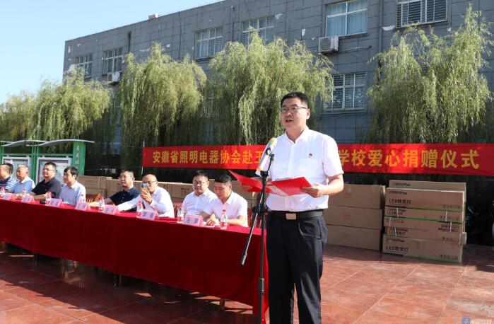 阜南县副县长、县公安局党委书记、局长郑磊对安徽省照明电器协会的爱心捐赠充分认可和高度赞扬。王家坝中心学校校长张云亮表达了对安徽省照明电器协会的感谢,“教室照明对孩子们的学习是相当重要的,希望安徽省照明电器协会的爱心能够给孩子们一个光明的未来。”