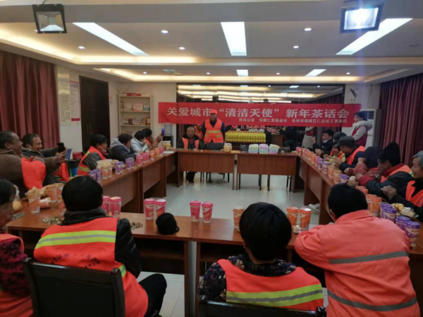这次新年茶话会活动,仁达社工机构链接社工平台资源,联合安徽仁爱基金会发起,“关爱城市清洁天使”公益项目今年6月份启动以来,已开展夏季送清凉、寒冬送暖、新年茶话会共3次,计划近期进行新年暖心探访1次,累计关爱城市清洁天使百名。(张跃华 孙艳侠)