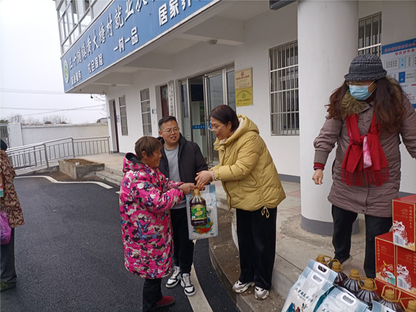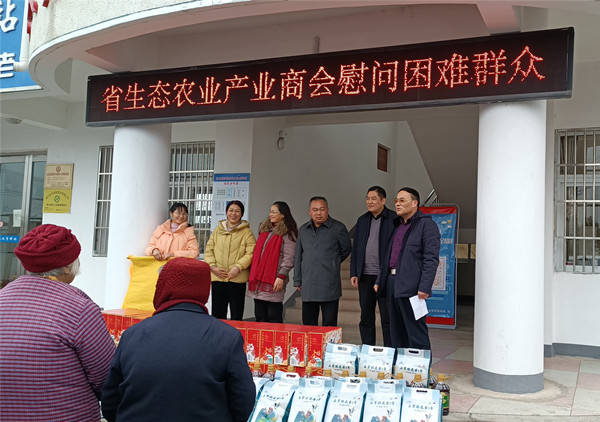 不忘初心使命,牢记社会责任。为积极履行社会责任和关爱弱势群体,帮助困难群众过上一个祥和欢乐的春节。1月22日上午,安徽省生态农业产业商会执行会长姜平、常务副会长汪家玲、副会长杨国继,党支部书记刘传记,秘书长王章潮及部分会员代表赴商会帮扶村六安市金安区三十铺镇黄大塘村开展慰问困难群众活动。对当地的40户困难户进行了慰问。给他们送去了食用油、大米等生活必需品和新年祝福,表达了对困难群众的关爱之情。