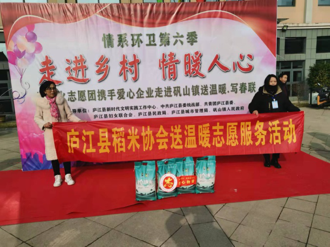 2.庐江县稻米协会来到矾山镇,为矾山镇的“基层最美劳动者”53名环节工人,每人赠送1袋“庐江大米”,表达对环卫工人的无比崇敬之情。让基层劳动者,困难党员感受社会温暖,分享新年喜悦。