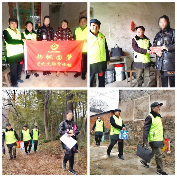图片为志愿团扬帆圆梦助学小组走进郭河镇三塘村困境儿童家中,为他们送上爱心人士的助学金4千元以及生活物资,鼓励小同学好好学习,天天向上。
