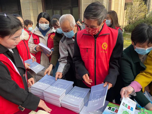 在活动现场,支部成员主要围绕《中华人民共和国建筑法》和生活垃圾分类等方面的有关规定,以“黑白合同”“如何区分各类生活垃圾”等进行讲解,并向社区居民免费发放《建设专业法律、法规、规章汇编》(2021版)和生活垃圾分类宣传手册。