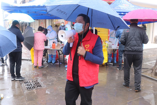 疫情就是命令,面对疫情他主动请战,作为一名党员他讲政治、守初心、舍小家、为大家,以身作则,深入抗疫一线,在两轮全员核酸检测中,连续几天奋战在城关镇向阳社区“抗疫一线”,协助社区引导扫码、政策宣传、信息采集、分流引导、维持秩序等工作,服务居民2000人次,人群中他不时穿梭在人群里,他穿着红马甲似“一抹党员红”,那一刻夺目炫丽。
