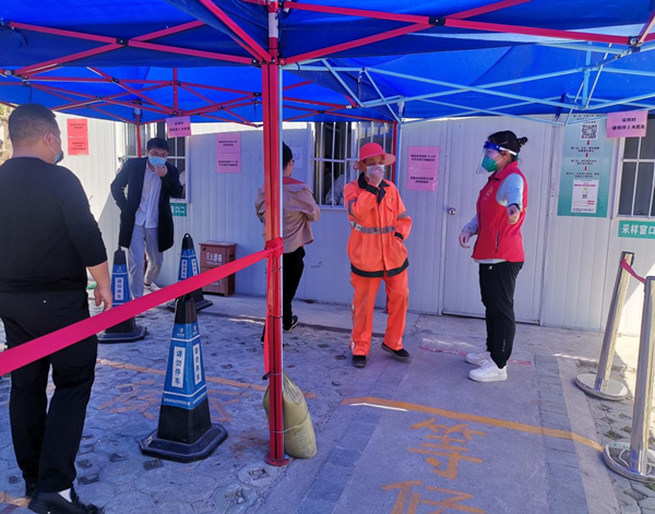 检测期间,志愿者们分工明确、有序引导,协助社区居民、环卫工人有序做好检测前的准备工作,并完成了待测人群的安康码、行程码的识别,录入,以及测温,个人防护检查等工作,确保了核酸检测现场井然有序,为该社区卫生服务中心核酸检测顺利完成做出了贡献。