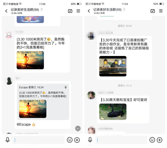 ¾ÝÁ˽⣬3ÔÂ29ÈÕÖÁ4ÔÂ10ÈÕÆÚ¼ä£¬Ñо¿Ôº×÷Ϊ°²´óÍâÓïѧԺʦÉúÐÄÀí·þÎñµÄÏîĿִÐз½£¬ÒѶԸôóѧÉúÃÇ¿ªÕ¹ÁËÊýÆÚ¡°¼Ç¼ÃÀºÃÉú»î¡±ÏßÉÏ·ÖÏí»î¶¯¡£ÔÚÿÆÚ»î¶¯ÖУ¬µÃµ½ÁËУ·½µÄ»ý¼«Ö§³Ö£¬Í¬Ñ§ÃÇÒ²Ó»Ô¾²Î¼Ó£¬Í¨¹ýÏßÉÏQQȺ·ÖÏí×ÅÿÌìµÄ¡°Ð¡È·ÐÒ¡±£ºÓеÄѧϰ×öÃÀʳ¡¢ÓеÄ×ö´ò¿¨Ô˶¯¡¢ÓеÄÅÄÉãÃÀ¾°¡¢»¹ÓеÄÁ·Ï°Êé·¨¡¢Ñ§»»µÈµÈ¡£¡°½ñÌìʳÌÃÓÐÐÂ²ËÆ·À²£¬ºÃºÃ³Ôѽ£¡¡±¡¢¡°´ºÌìÀïµÄ»¨»¨²Ý²ÝÕæºÃ¿´£¬ÂúÂúµÄÏ£Íû£¡¡±¡¢¡°1000ÃײâÍêÁË£¬ËäÈ»ÅܵIJ»¿ìµ«ÎÒ¾¡Á¦À²¡±¡¡Í¬Ñ§ÃÇÔÚÊÜÏÞµÄÌõ¼þÖÐÖÆÔì»¶ÀÖ,²»¾Òâ¼ä´«µÝ×ÅÎÂůÓë¸Ð¶¯¡£