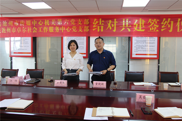 座谈会上,双方支部书记分别介绍了各自党支部情况、党建活动特色以及工作开展情况,交流了党建经验,并签订了支部结对共建协议,这标志着池州市卓尔社会工作服务中心党支部与池州市传媒中心机关第六党支部在构建资源共享、优势互补、共同提高的党建工作新格局方面迈出了重要一步。
