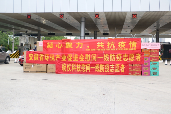 4月中旬合肥爆发疫情后,安徽省环保产业促进会反应迅速,立即联合合肥市文明办向全体会员发出向一线志愿者捐助急需抗疫物资后,此举得到骨干会员响应,首批向合肥市绕城高速包河大道与金寨路两个道口志愿者群体捐助的价值约6.5万元物资交接到位,展示了安徽环保产业界的责任担当,风中亮出猎猎飘扬的旗帜。