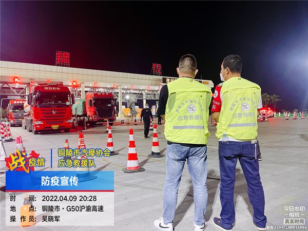 安徽省汽摩联铜陵办事处、铜陵市汽车摩托车运动协会应急救援队在2022年疫情志愿服务中