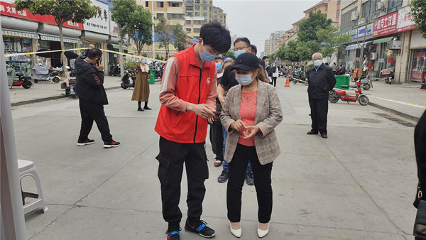 在活动开始前,首先对参加活动的志愿者进行业务培训,告知相关注意事项,进行分组分工。随后志愿者们分赴十二个核酸检测点进入“战斗”状态。志愿者们放弃中午休息时间,以极快的速度极大的热情投入到疫情防控任务中,让社区工作人员敬佩不已。