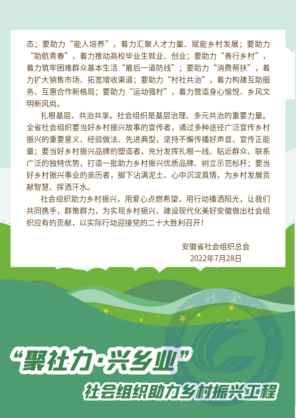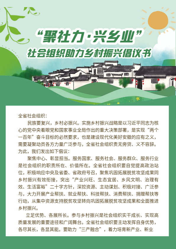“聚社力·兴乡业”社会组织助力乡村振兴倡议书